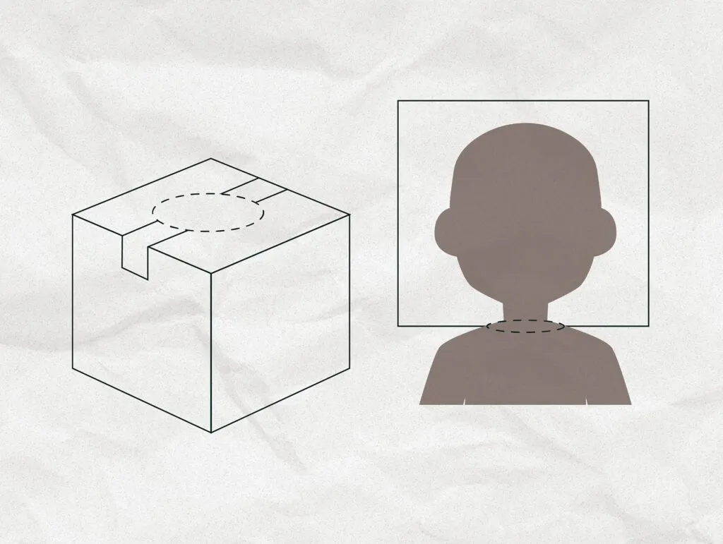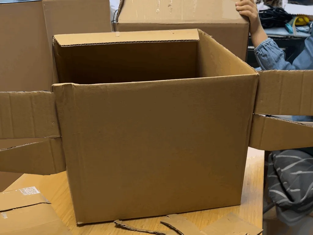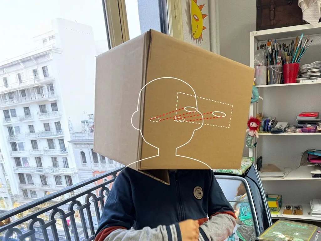 1. En una caja de cartón, hacemos un agujero a la altura de nuestros ojos.