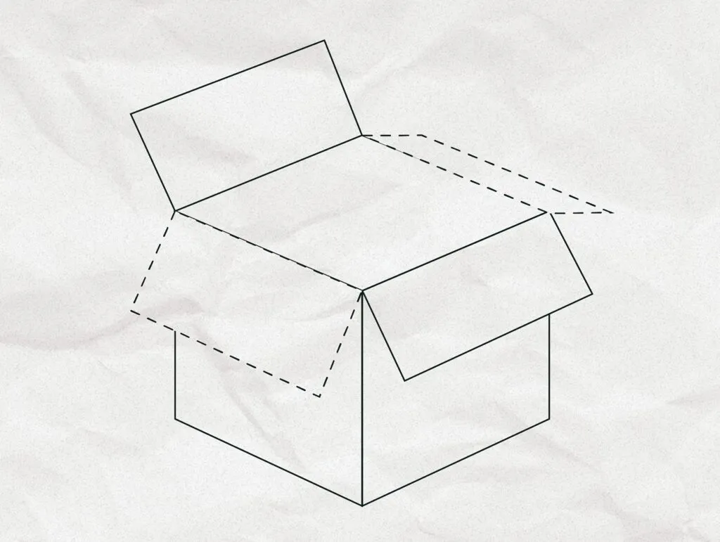 4. Con la caja cerrada, le damos la vuelta y cortamos 2 de las solapas laterales para usarlas más tarde.